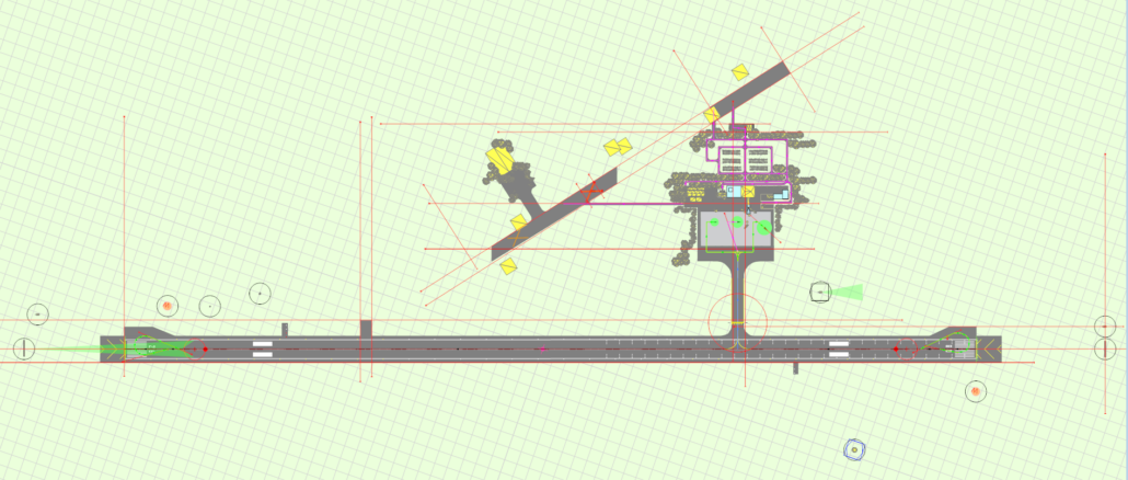 Een GROENE tekst geeft aan dat het hier om een GRASS RUNWAY gaat